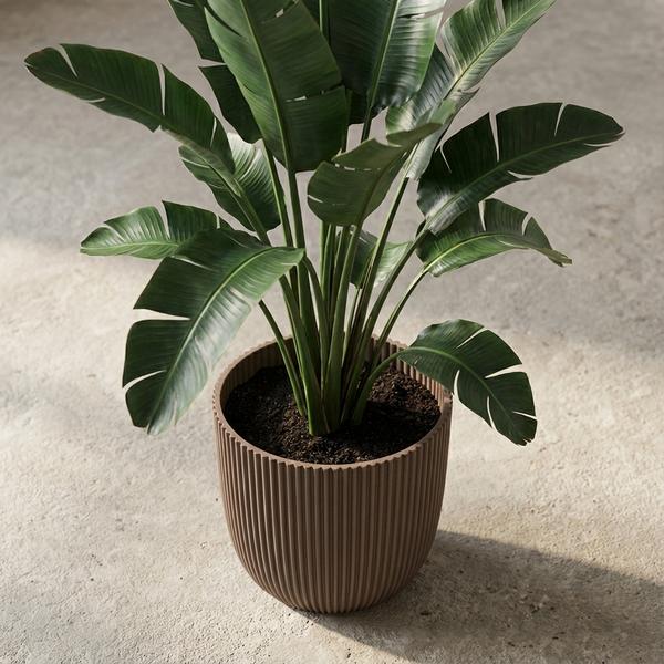 Bereichern Sie Ihre grüne Oase mit dem exquisiten Capi Nature Groove Topf, einer wahren Hommage an natürliche Eleganz. Sein ansprechender warmer Taupe-Ton verströmt eine behagliche Wärme und lädt zu Gelassenheit in jedem Raum ein. Die markanten vertikalen Rillen verleihen dem Topf einen besonderen taktilen Reiz und ein modernes, doch organisches Gefühl, wobei das Licht wunderschön spielt und Ihrem Pflanzenarrangement Tiefe verleiht. Entworfen, um sowohl üppiges Blattwerk als auch leuchtende Blüten zu ergänzen, fügt sich dieser Topf mühelos in jedes Dekor ein und verwandelt Ihr Zuhause oder Ihren Außenbereich in einen stilvollen Rückzugsort natürlicher Schönheit und dezenter Raffinesse.