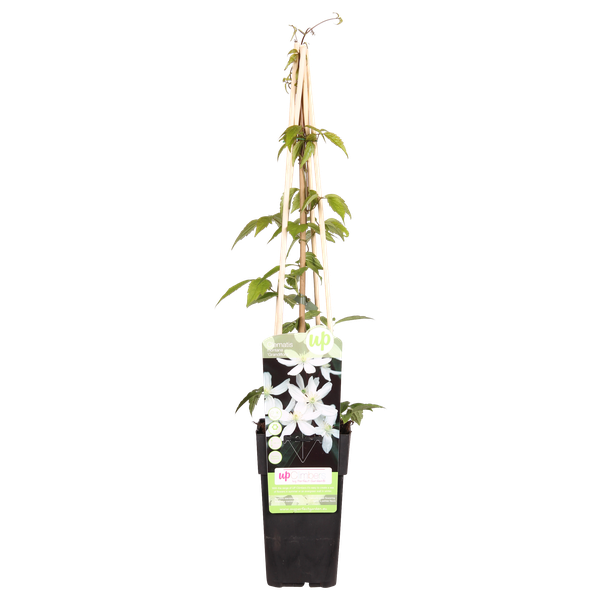 „Clematis Montana Grandiflora“ ist ein kleiner blühender, aber auch reich blühender Clematis, der im Frühling eine Fülle weißer, duftender Blumen verleiht. Die Clematis wächst schnell und macht mehr und längere Ranken als die meisten Clematis. Die Kletterpflanze eignet sich perfekt zum Überwachsen einer Pergola, kann aber auch entlang einer Wand, eines Zauns oder eines Racks in Ordnung sein. Er braucht Hilfe beim Klettern, weil er sich nicht daran befasst. Sie können es daher zu einem Draht- oder Netzwerk führen. Ein wunderschönes und auffälliges Merkmal ist, dass er eine Zeitschrift hat, die im Herbst verfärbt. Kalttemperaturen sind kein Problem für die winterharte Kletterpflanze.