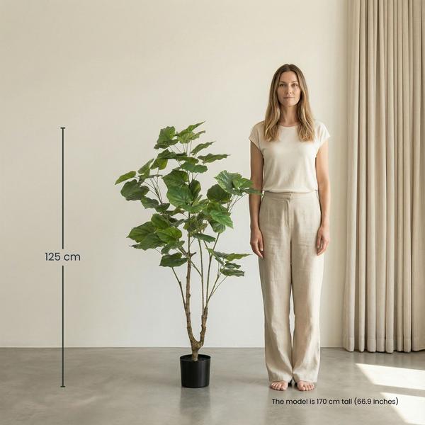 De Ficus Umbrella kunstplant van 125 cm is een elegante groene eyecatcher met opvallend grote bladeren en een slanke stam. Deze levensechte kunstboom voegt rust en stijl toe aan elke ruimte, zonder dat je hoeft te denken aan water geven of snoeien. Ideaal voor woonkamers, kantoren of horecazaken waar je langdurig wilt genieten van groen, zonder onderhoud.