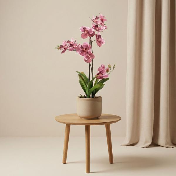 De Vanda orchidee kunstplant van 60 cm in een warme oudroze tint is een elegante toevoeging aan elk interieur. De realistische bloemen en fijne afwerking geven deze kunstplant een luxe uitstraling, zonder dat je hoeft te denken aan water, licht of verzorging. Ideaal als blikvanger op een tafel, dressoir of in een wachtruimte.