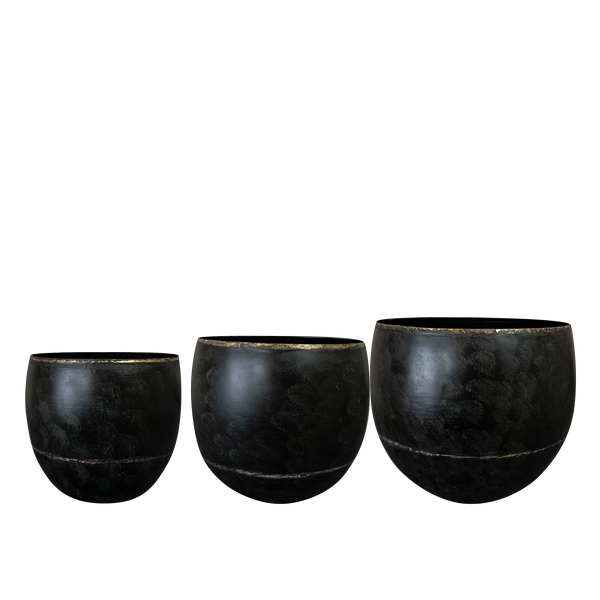 Das dreiteilige Set schwarzer Vintage-Blumentöpfe von Belia ist eine stilvolle und einzigartige Ergänzung für jeden Innen- oder Außenbereich. Jeder Topf ist handgefertigt aus hochwertigen Materialien und garantiert so Langlebigkeit und einen authentischen Vintage-Look. Die dezente Goldverzierung verleiht den Töpfen zudem eine elegante und luxuriöse Note.Ein harmonisches Ganzes
